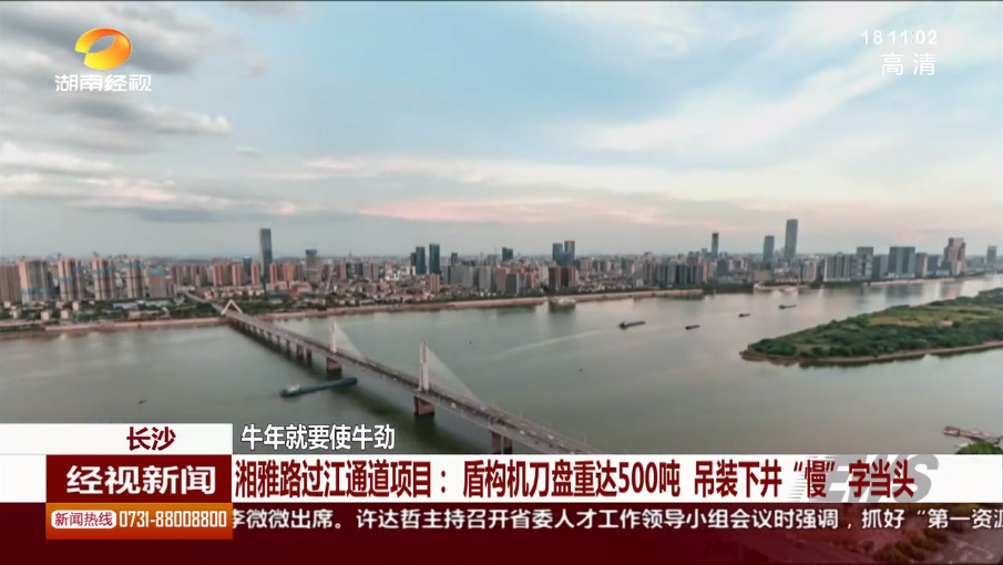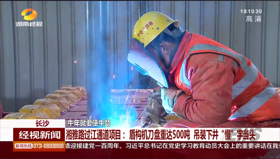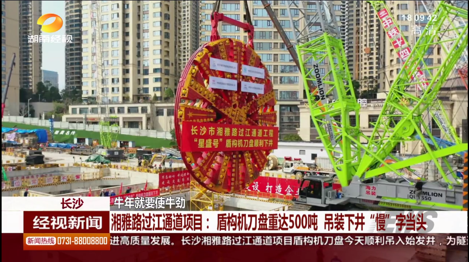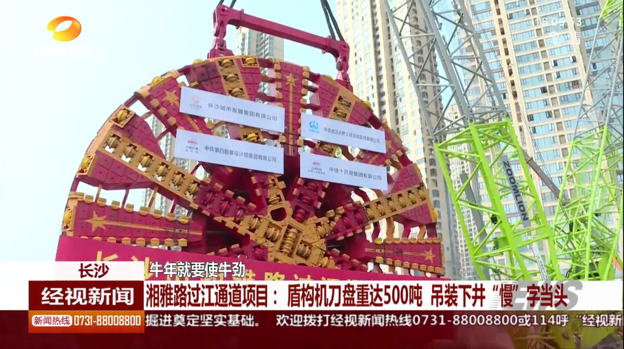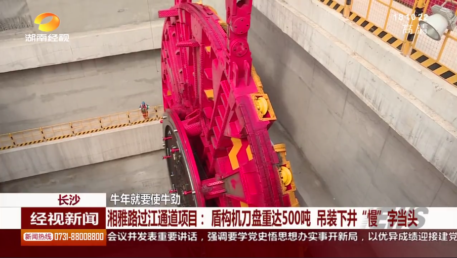 湖南經(jīng)市新聞:長沙 牛年就要使牛勁 湘雅路過江通道項目:盾構(gòu)機刀盤重達(dá)500噸 吊裝下井“慢”字當(dāng)頭